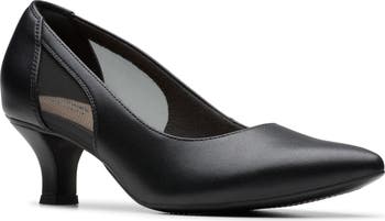 Supple leather construction adds a polished finish to a pointed-toe pump grounded by a molded comfort-footbed and flexible sole for comfort.