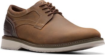 Put a sporty spin on your casual footwear options with this plain-toe oxford made from smooth leather with complementary color detailing and a striped outsole. Grippy tread adds surefootedness to your assured look.