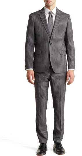 Finely textured pinstripe fabric elevates a classic fit suit featuring a classic blazer and trousers for a dapper look.