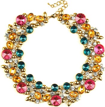 - Gold-tone multi color enamel stone chunky collar necklace