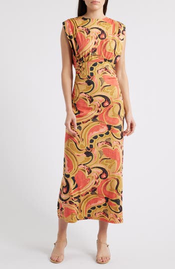 Oversized paisleys adorn this organic-cotton midi dress, featuring an Empire waist beautifully enhanced by soft gathers under the bust.