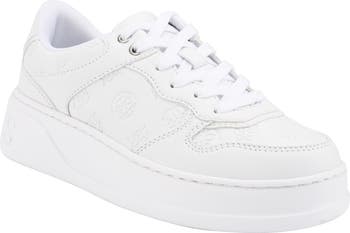 An embossed design brings brand-signature style to this sporty sneaker grounded on a chunky cupsole.