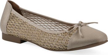 Breeze through your day in this airy jute and mesh ballet flat constructed with arch-supportive cushioning for easy-wear comfort.