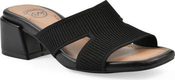 Breeze through your day in this block-heel sandal constructed with stretchy knit for easy-wear comfort.
