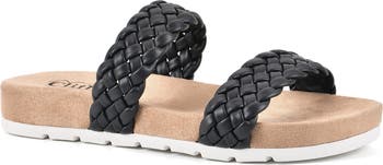 Braided vamp straps bring luxe texture to a casual slide sandal grounded by a flexible sole.