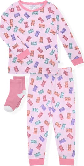 Your little one will adore this matching pajama set featuring an allover gummy bear print and crafted from stretchy fabric for all-day comfort and paired with soft socks.