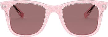 An iconic shape defines these essential sunglasses that lighten the look with slim metal temples, marked with the brand's name.