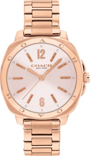 Movement: Three-hand quartz movement. Quartz movement: powered by a battery and features an internal electrical circuit to control the rate of the watch's ticking.