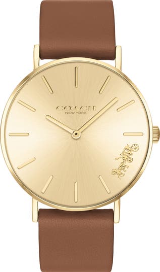 Classic and with tasteful styling, this watch has a brushed steel dial with the iconic horse-and-carriage logo and supple leather strap.