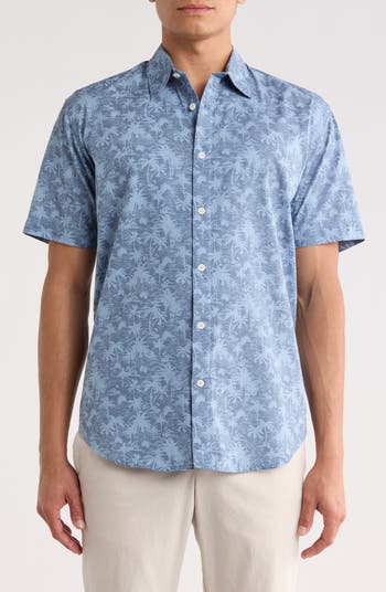 This cotton button‑up shirt features a tropical print that adds a relaxed, warm‑weather feel to a polished, everyday style.