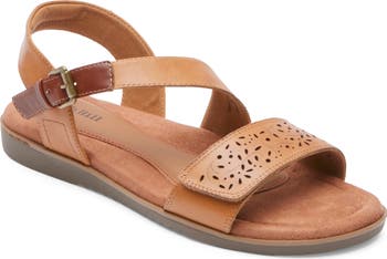 Ample arch support adds everyday comfort to a casual-chic sandal featuring perforated floral designs along the straps.
