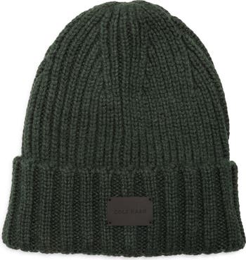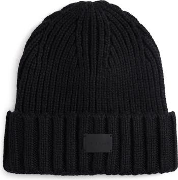 Tonal seams secure a logo patch that make an impression of a cuff on this cozy beanie cut in a slim silhouette for a sure, snug fit.