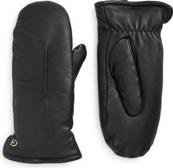 These leather mittens are a stylish choice for daily outings and feature faux-fur lining for added warmth on chilly days.
