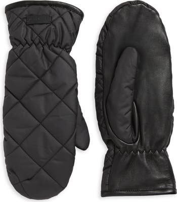 Bundle up without compromising on refinement with these gloves textured with luxe diamond quilting, lined with faux fur and made with leather palms for a secure grip.