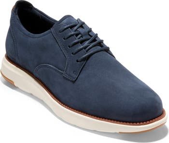 A leather derby with a lace-up closure and white sole offers a sleek, on trend style for a chic look.