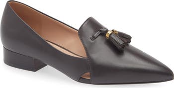 Hardware-tipped tassels and a pointy toe highlight the label's signature polish with this loafer-inspired flat framed by small side cutouts.