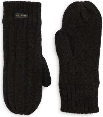 A classic cable-stitch design and plush faux fur lining define these supersoft, stretchy mittens with a ribbed cuff for an ideal fit.