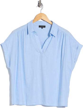 Made from a lightweight linen-kissed design, this collared top is cut in a modern boxy silhouette that drapes effortlessly.