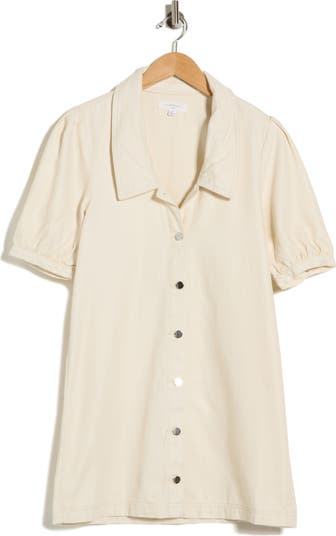 A smart collar and buttoned placket deliver utilitarian style to a cotton-blend dress cut to a stem-showing length to make it a warm-weather favorite.