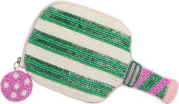 A beaded ball charm swings from this fun pickleball-racket shaped coin purse.
