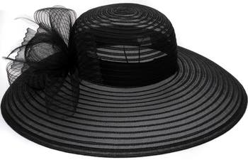 Bring a dramatic flourish to special-occasion looks with this downbrim hat afixed with a large mesh bow.