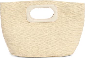 Faux-leather trimmed cutout handles bring a refined touch to this raffia-woven bag designed with a durable, easy-to-clean unlined interior for effortless everyday style.