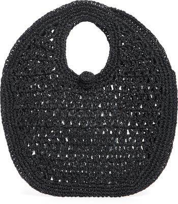 Cutout handles are built-in to a sculptural round bag crafted from woven raffia that gives a perfect summery vibe to any look.
