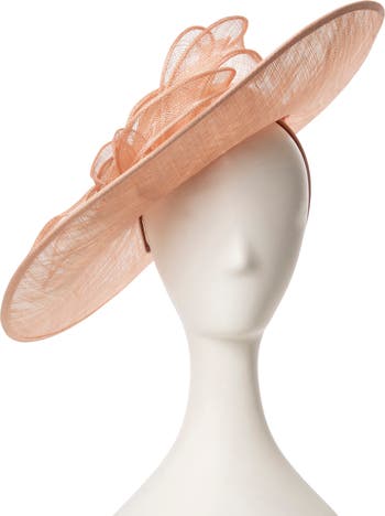 Weddings, garden parties and other special occasions are the perfect setting for this wide-brim fascinator crafted from airy straw and sweetened by a large flower.