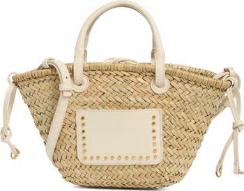 Carry your sunny-day essentials in this woven straw tote bag framed by smooth faux-leather trim.