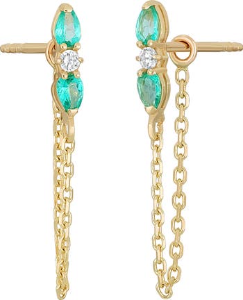 A bright topaz baguette and sparkling diamonds anchor the chain that swings from the front to the back of these handcrafted earrings.
