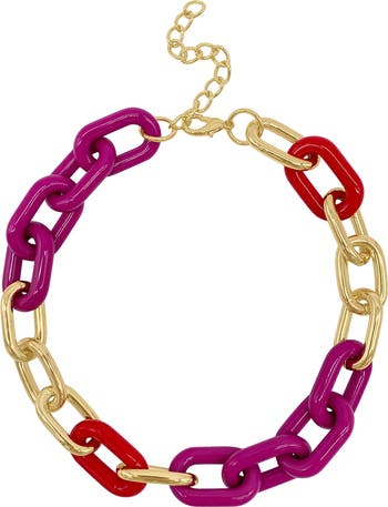 Colorful links bring 80s inspired style to this unique gold-tone link necklace.