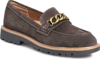 Antique chain-link hardware enriches the vamp of a polished loafer grounded by a cushioned footbed and durable lug sole.