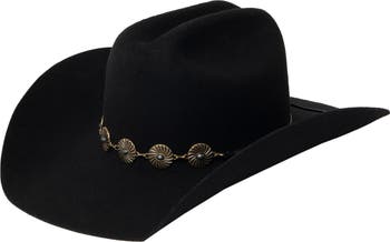 From the ranch to the weekend, this sleek wool cowboy hat features a concho-adorned band for rugged Western style.