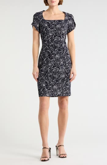 Tulip sleeves add a sweet finishing touch to a floral sheath dress that has you looking posh and sophisticated from days in office to special occasions and beyond.