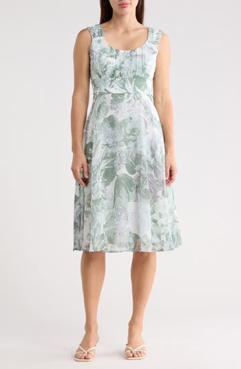• Connected Apparel Floral Puff Sleeve Tiered Dress