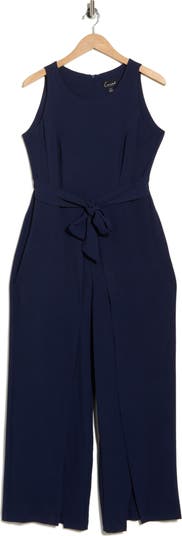 Set the trend in this sleeveless jumpsuit fashioned with a self-tie belt, handy side pockets and a split-leg silhouette.
