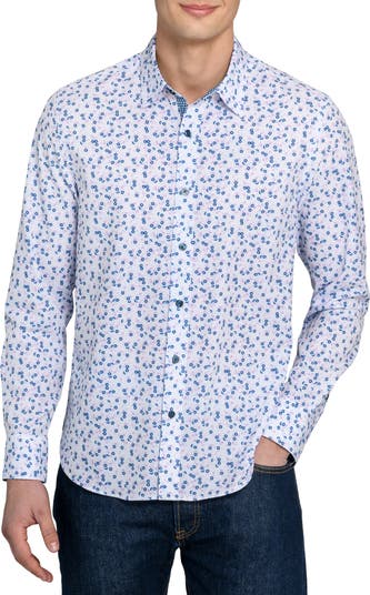 A slim fit silhouette creates a tailored look that complements the classic details of this breathable woven dress shirt finished with contrast print at the cuffs and placket.