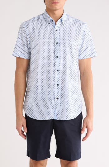 A leafy pattern brings an earthy feel to a buttoned shirt that makes a perfect choice for date nights, happy hours and more.