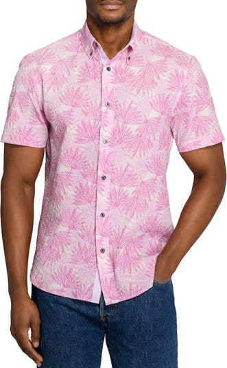 Made from a breezy, stretch-kissed seersucker, this summery slim-fit button-up shirt covered in a palm-frond print is perfect for a warm-weather weekend outing.