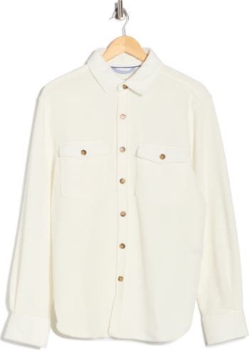 A relaxed fit makes layering easy with this waffle-textured shirt-jacket finished with chest pockets for casual style.