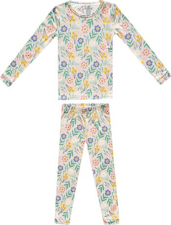 Pastel flowers spring up on snug-fitting long-sleeve pajamas made from a supersoft and stretchy fabric for all-night comfort.