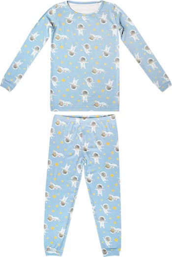 Astronauts float across the sky on these snug-fitting long-sleeve pajamas made from a supersoft and stretchy fabric for all-night comfort.