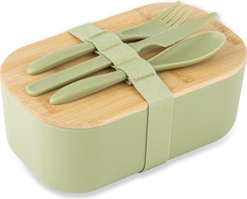 Make meals easier on the go with this reusable bento set that includes a five-cup capacity container, a secure bamboo lid and three utensils.