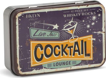 A cool retro-printed tin distinguishes this giftable set of 12 soapstone whiskey rocks. Soapstone is tasteless and does not scratch glassware, making it a great way to keep drinks cold without diluting the flavor.
