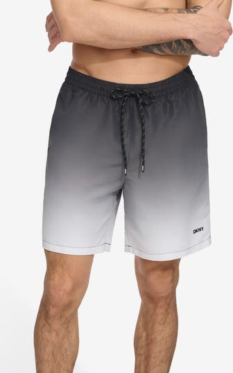 Seek out the gnarliest waves in ombré patterned swim trunks made from a fabric featuring built-in sun protection.