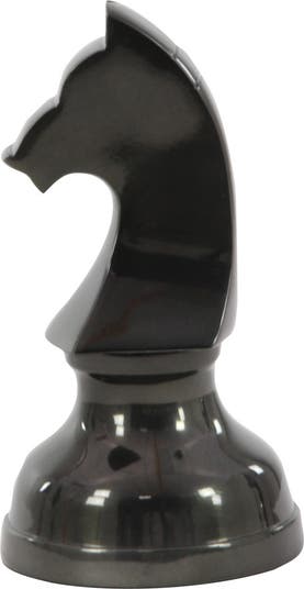 Obsessorize with this set of 3 large, decorative chess piece finials, sculpted to form a king, knight, and bishop. The large chess piece sculptures with chrome-like, metallic black finishes make for unapologetically bold table decor, while creating a sophisticated and stylish narrative.