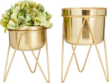 These gold-tone geometric legged plant stands are the perfect way to showcase your favorite greenery indoors.