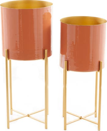 Instantly update your living space with this modern duo set of iron planters.