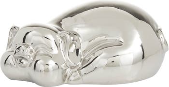 A silvery wash adds elegance and shine to this adorable sculpture of a sleepy pig.