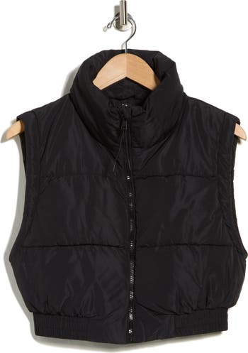 Stay cozy with this channel-quilted puffer vest fashioned in a sporty cropped silhouette.